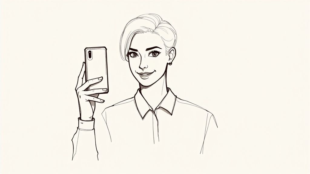 Getting these simple techniques right is essential. Our online presence is non-negotiable now, and the demand for great images has fueled some incredible growth in related tech. The global selfie application market is projected to hit roughly $15 billion by 2033. You can explore more on this market growth at archivemarketresearch.com to see just how central these images have become. By nailing the lighting and camera settings, you're setting the stage for a perfect AI transformation.