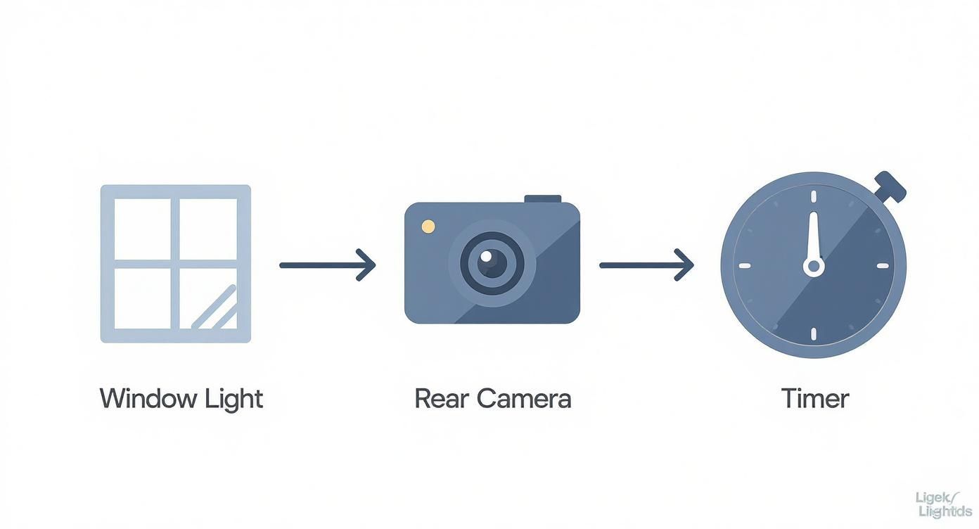 Natural light is soft, forgiving, and makes pretty much everyone look good. The trick is knowing how to use it. You want to be facing the window, letting that gentle, indirect light hit your face evenly.