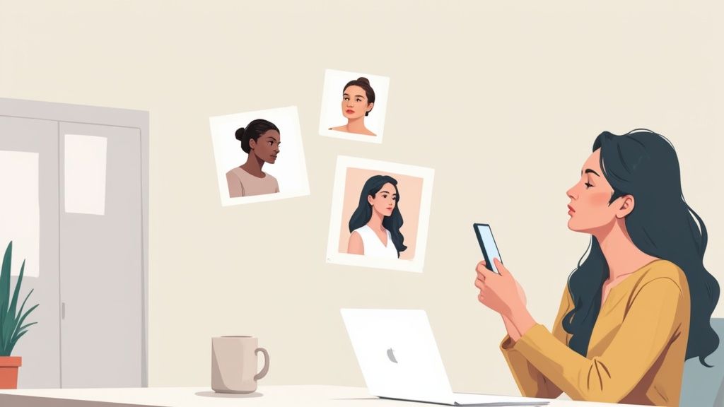 AI headshot generators are leveling the playing field. They offer an affordable and seriously convenient solution. You can create dozens of studio-quality women's business headshots in minutes, ensuring your digital presence is always sharp. This isn't just about saving time and money; it's about owning your professional narrative. You can learn more about the fascinating psychology of first impressions and see just how much these visual cues matter.